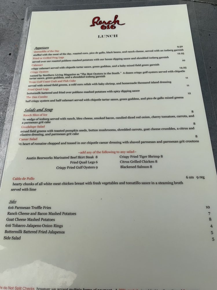 Ranch 616, a cocktail bar and American restaurant in Austin, TX, offers a unique dining experience with creative dishes and a lively atmosphere. Known for its quirky and iconic ambiance, Ranch 616 is a favorite spot for special occasions and out-of-town visitors. Customers rave about the delicious food, such as the $19 Cobb salad and chicken fried steak. The restaurant's full bar serves up the best version of a ranch water and offers a diverse drink menu. With attentive service, ample portions, and a Texas-inspired decor featuring vintage photos and mounted animals, Ranch 616 provides a memorable dining experience. Whether enjoying brunch with friends or hosting a large group event, Ranch 616 stands out for its quality food and welcoming environment.